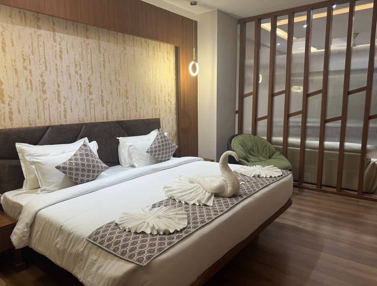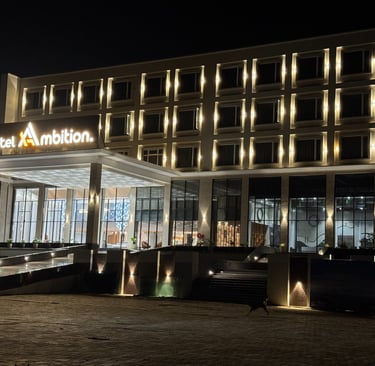 At Hotel Ambition we intend to cater corporates, tourists and marriage functions. Its the onlyproject in the region which has facilities to cater to aforementioned customers. With an inventoryof 82 rooms(42 premium rooms, 36 suite rooms, 3 presidential suites), a 200 cover 6500 sq.ftvegetarian restaurant, 4 banquet halls(8000 sq.ft, 2500 sq.ft, 2000 sq.ft, 2000 sq.ft each), a pre-function hall and a 30000 sq ft marriage lawn we expect an array of guests. The hotel will includefacilities like roof top restaurant, private party areas, conference halls, roof top swimming pool,spa and a gymnasium.
