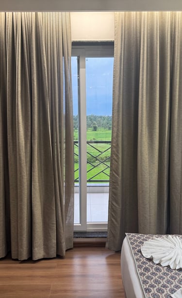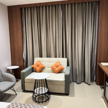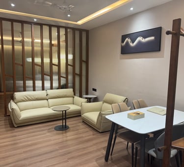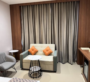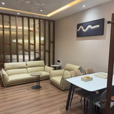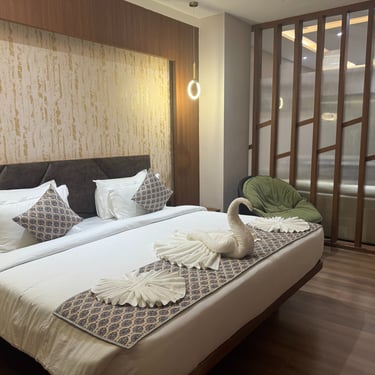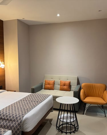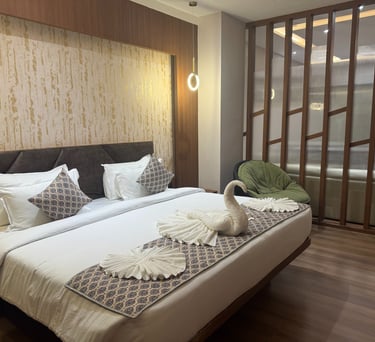 The Studio Room is our grand suite room which has common seating and dining seperate from a luxurious bedroom. lts spacious layout, refined interiors, exclusive amenities and a modern bathroom with premium fittings offers the perfect mix of comfort and sophistication. With plush furnishings, warm lighting, and serene views, the Grand Suite is ideal for guests seeking privacy, indulgence, and a truly elevated stay.