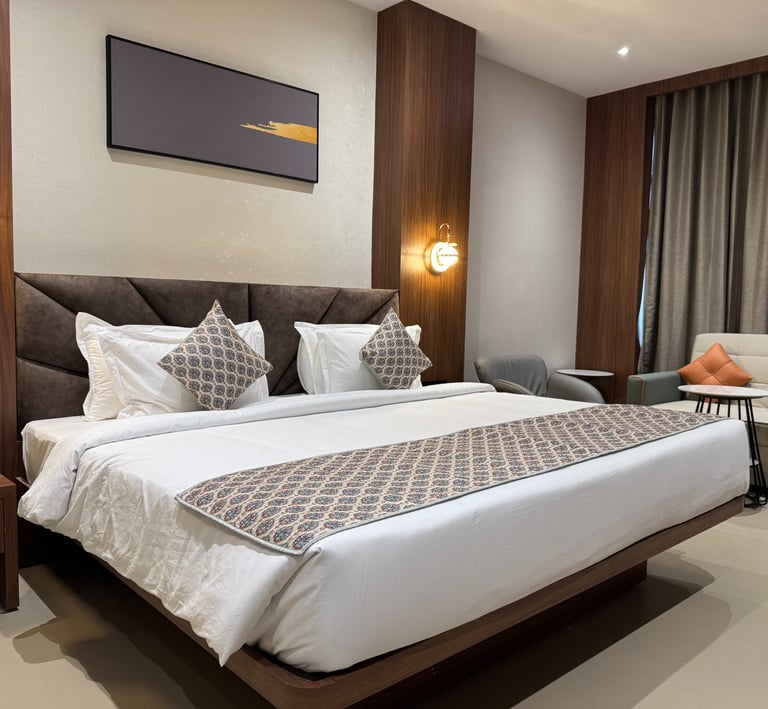 The Classic Standard Room offers the perfect blend of style and comfort, featuring a generous layout and a luxurious king-sized bed for ultimate relaxation. Thoughtfully designed with modern décor, cozy seating, and smart amenities, it ensures both convenience and elegance. Ideal for business travelers or couples, the King Room provides a restful escape with the right balance of sophistication and comfort.
